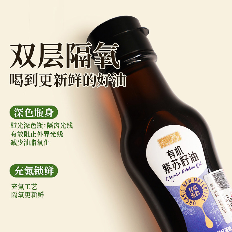 人民有机紫苏籽油低温一级冷榨纯苏子籽食用油直饮凉拌冷吃100ml