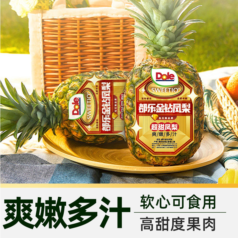 Dole/都乐 海南金钻凤梨超甜凤梨 应季鲜果 2只装 单果1000g