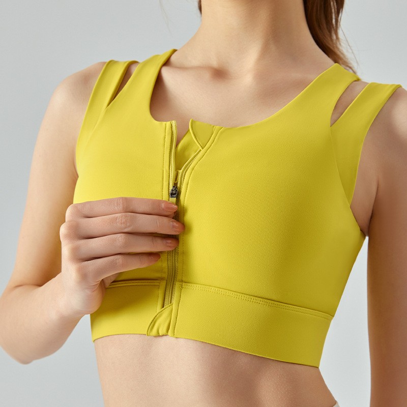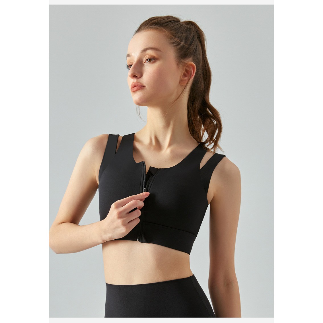 一体式固定杯高强度前拉链运动内衣减震瑜伽文胸器械健身训练背心