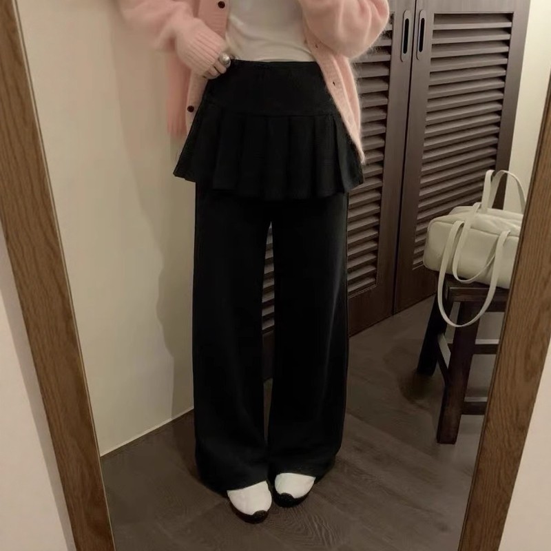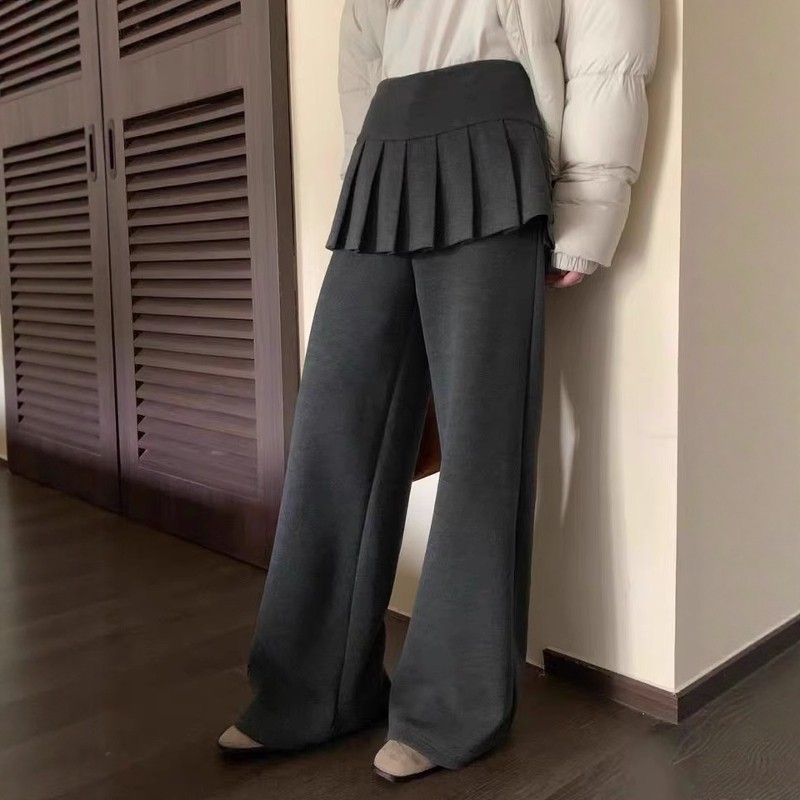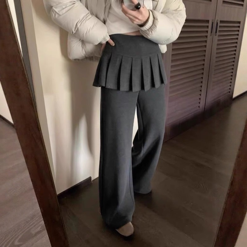 设计感假两件百褶裙屁帘微喇叭裤女加绒2025冬季新款显瘦休闲长裤