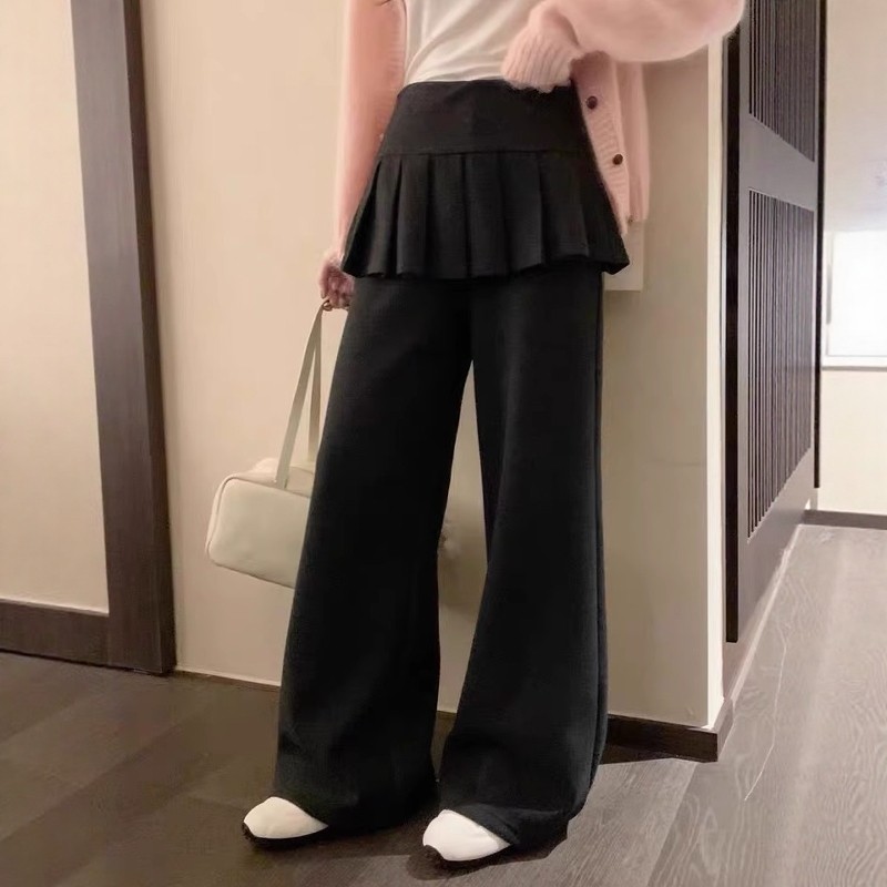 假两件百褶裙屁帘微喇叭裤女休闲