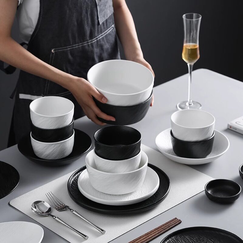 陶瓷盘子菜盘家用蒸鱼盘碗碟餐具套装高级感深盘汤盘轻奢牛排餐盘