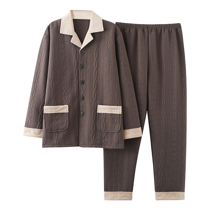 北极绒空气棉男士睡衣秋冬季加厚纯棉长袖夹层大码家居服套装新款