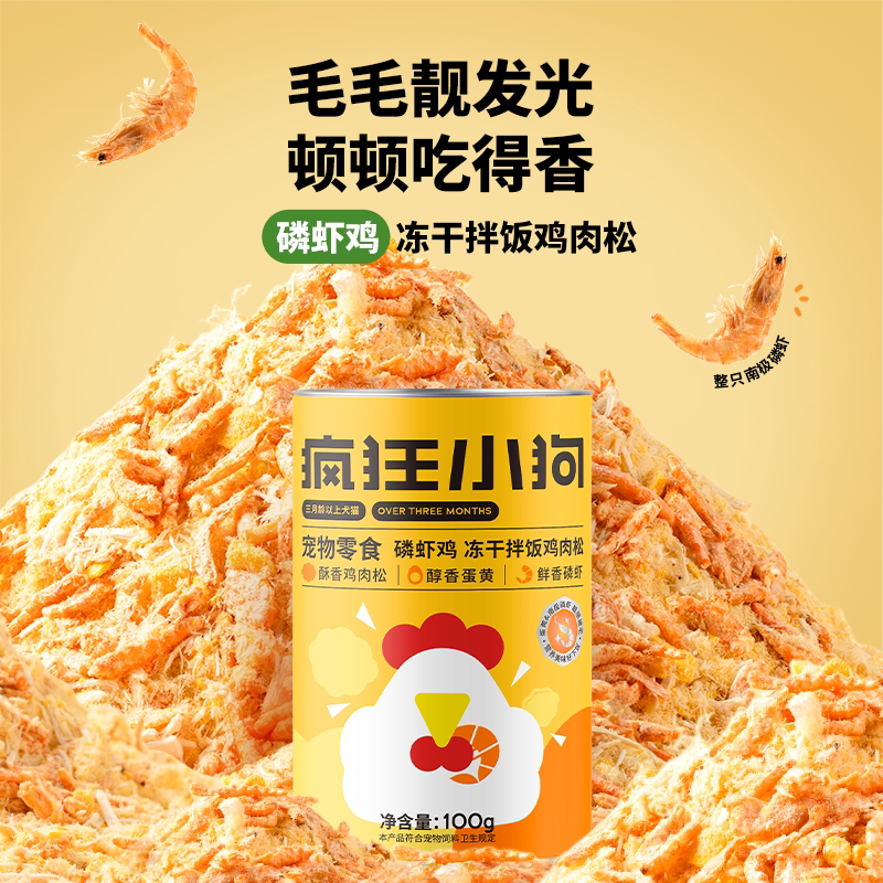 疯狂小狗狗零食蛋黄磷虾鸡肉松冻干猫零食猫粮伴侣美毛狗粮拌饭