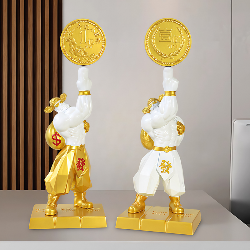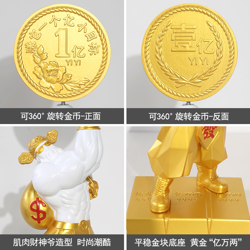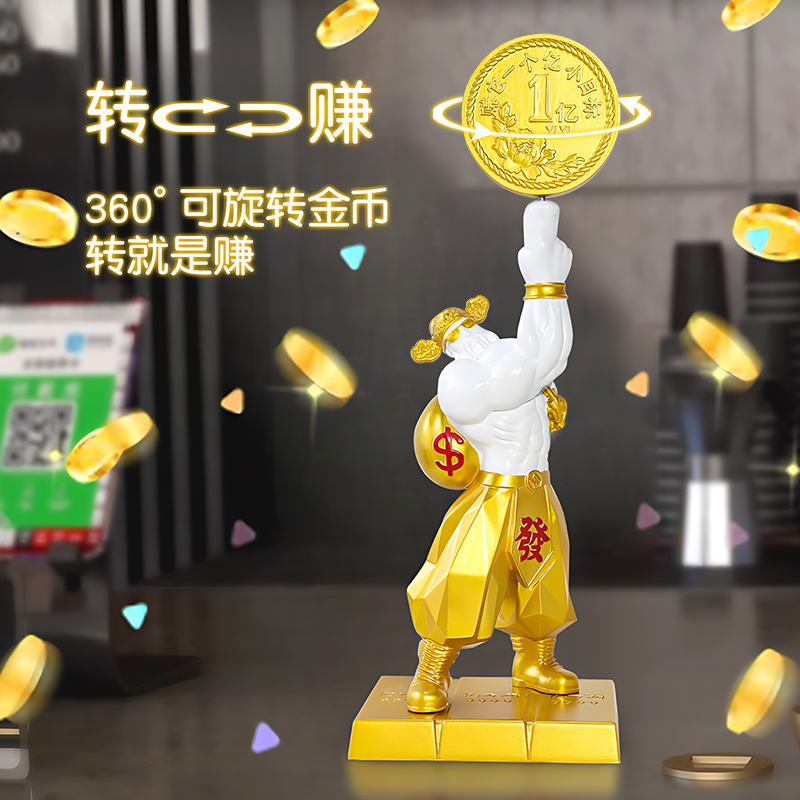 肌肉财神招财摆件赚一亿客厅办公室前台装饰乔迁新居店铺开业礼物