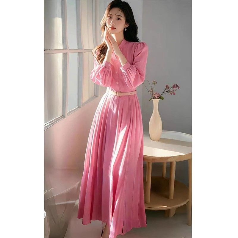 【1111人收藏】法式气质粉色衬衫连衣裙女士2025春秋大码收腰显瘦