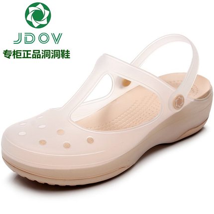 JDOV夏季时尚软底洞洞鞋女防滑沙滩拖鞋坡跟凉拖鞋外穿白色护士鞋