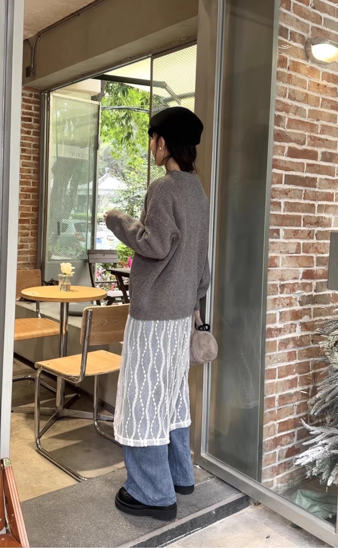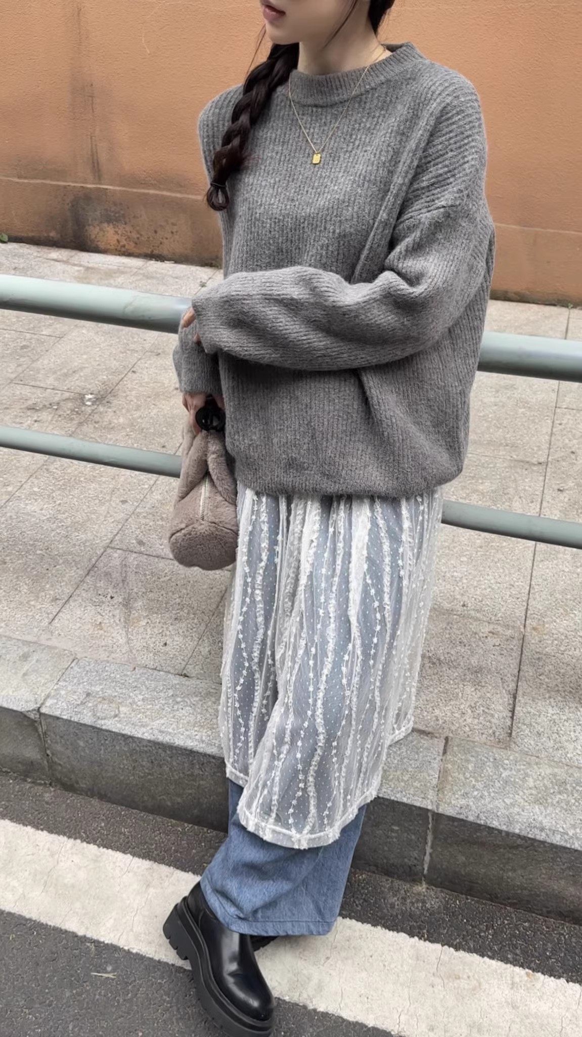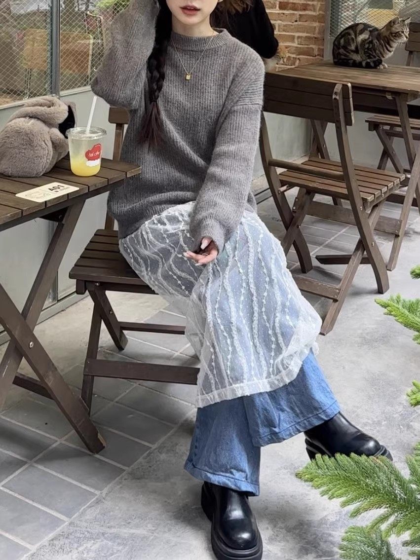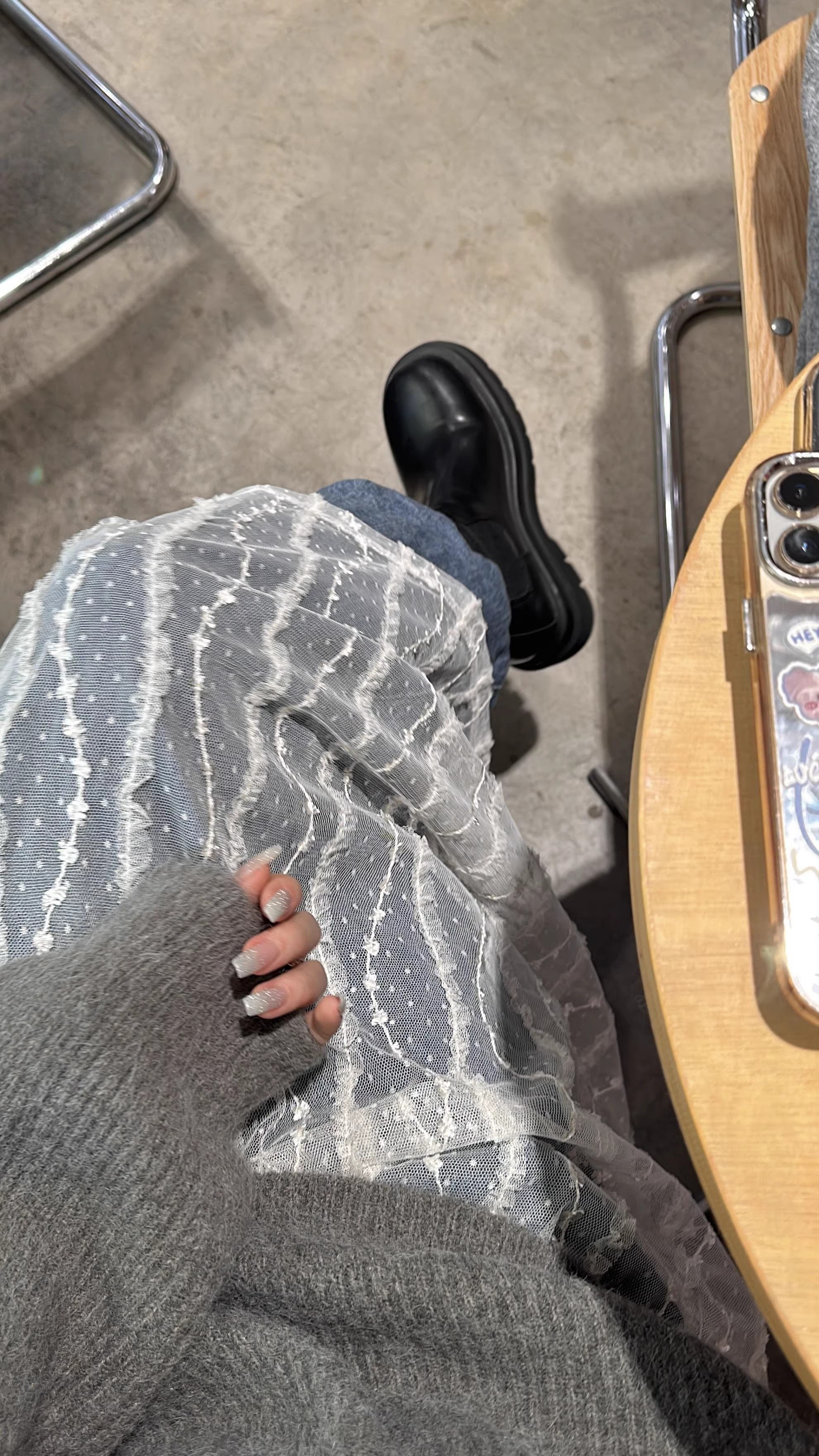 网纱蕾丝屁帘半身裙女秋冬高腰叠穿凹造围裙下摆中长裙镂空纱裙子