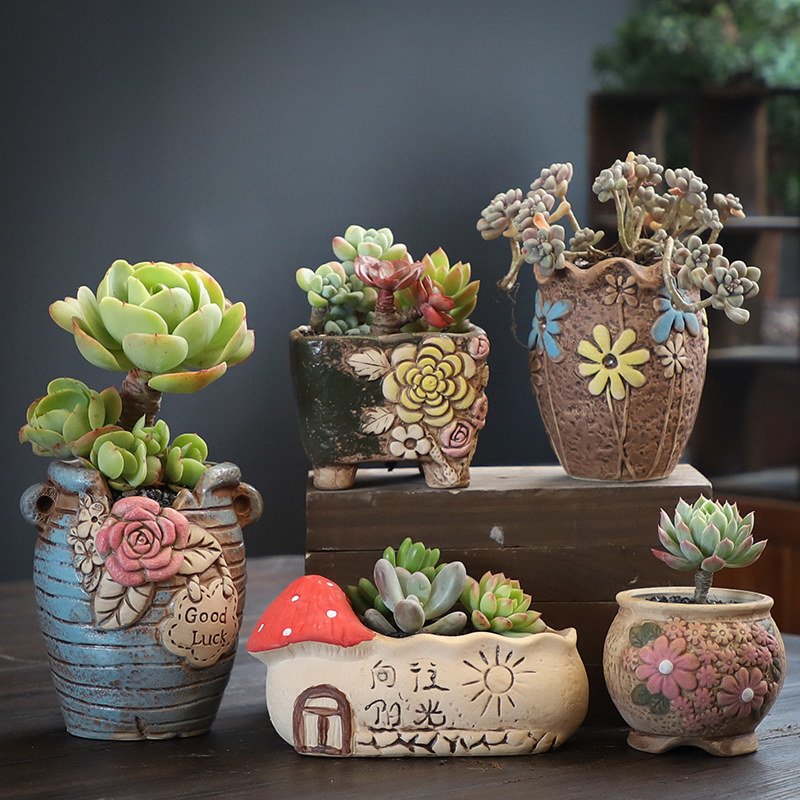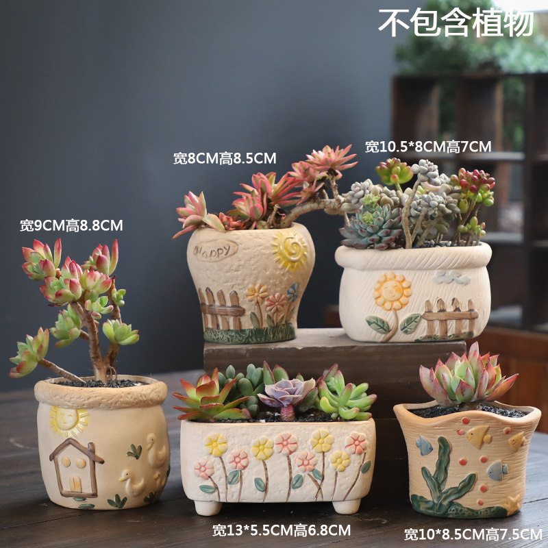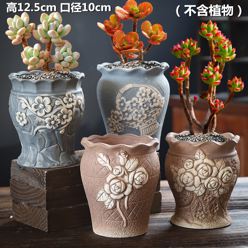 老桩多肉花盆陶瓷粗陶透气大号创意个性桌面肉肉植物特价清仓包邮