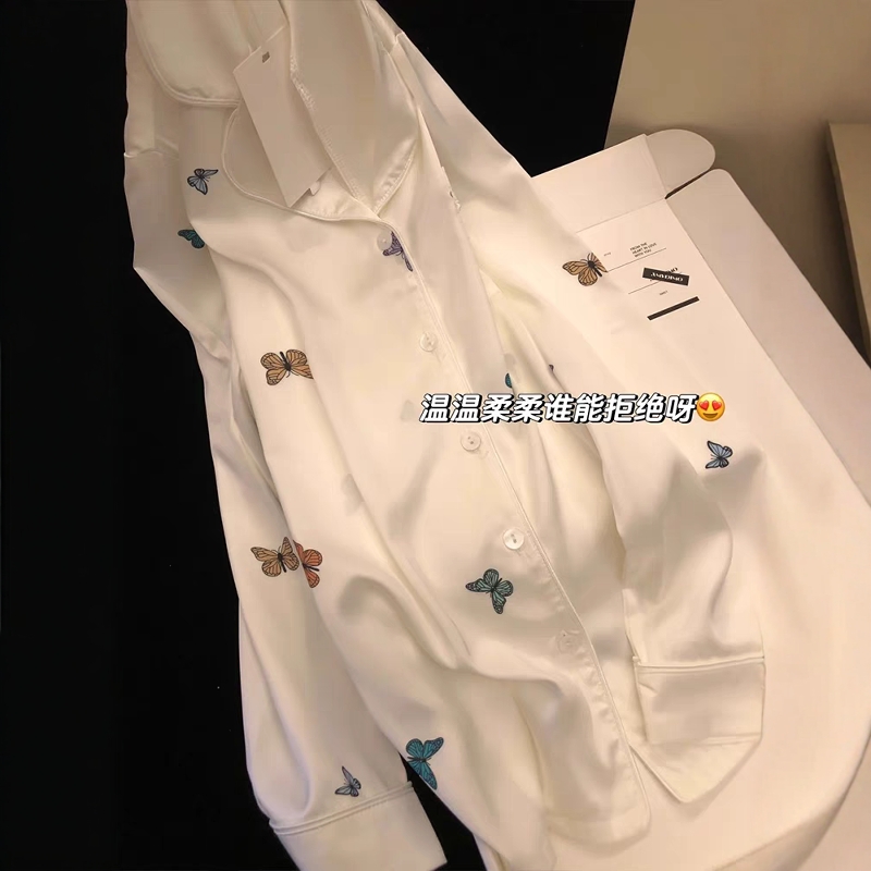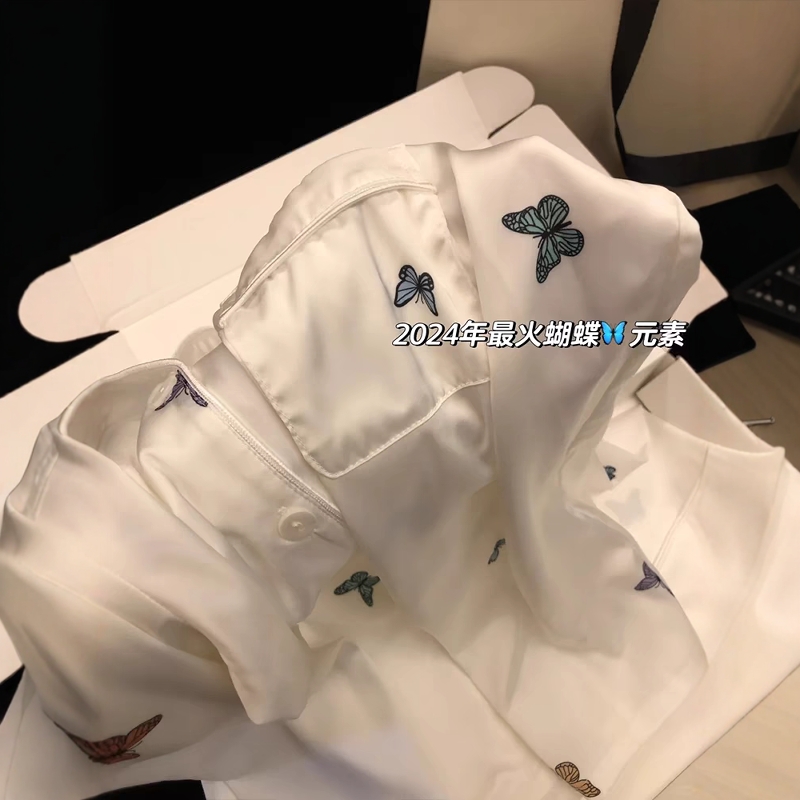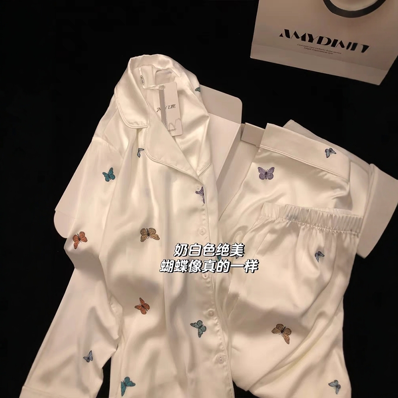 蝴蝶睡衣女款春秋夏季2025新款长袖冰丝短袖高级感丝绸家居服夏天