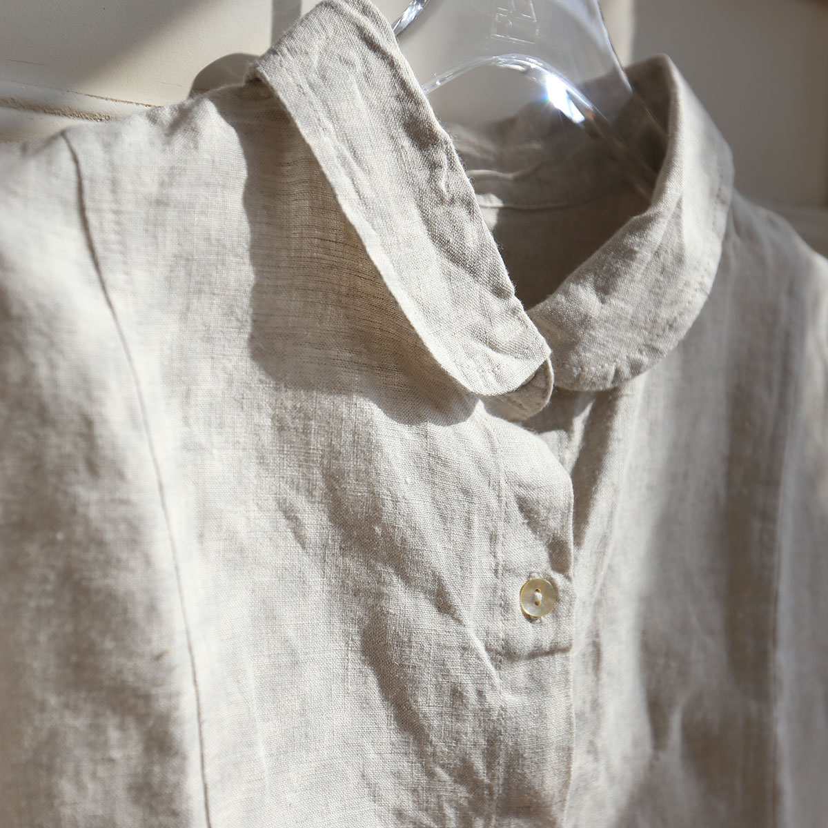 少年的你 法国水洗亚麻纯色减龄女士衬衫 春秋娃娃领舒适长袖上衣