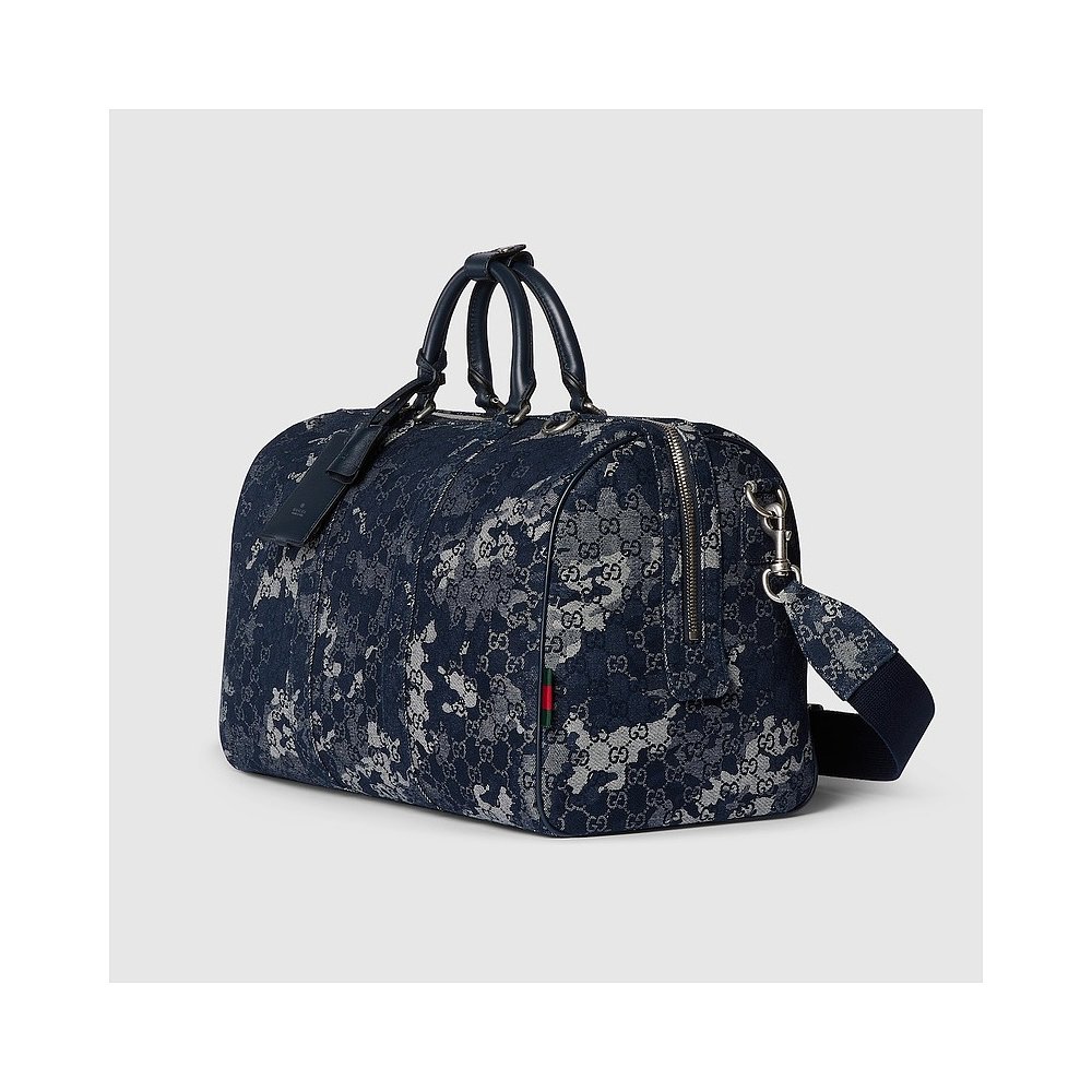 自营欧洲直邮Gucci/古驰 男士深蓝色牛仔布迷彩双G旅行包