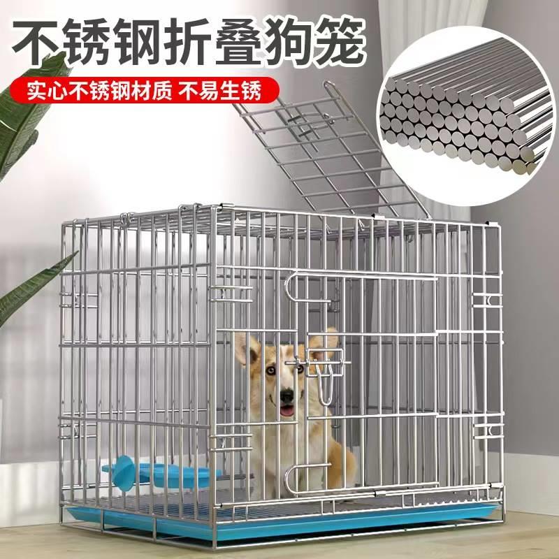 实心不锈钢折叠运输狗笼大中小型犬笼猫狗鸡兔笼加密不清