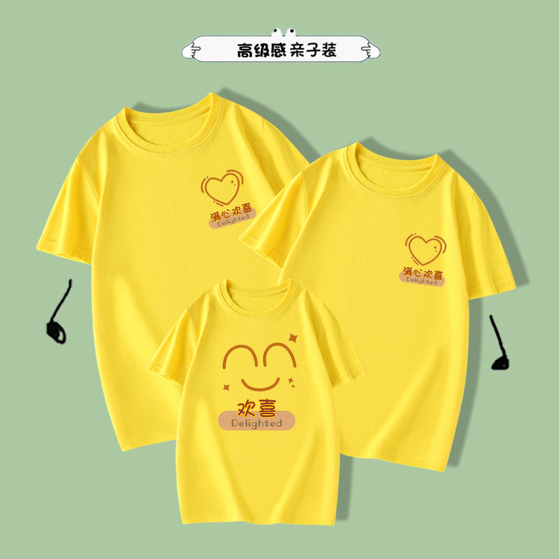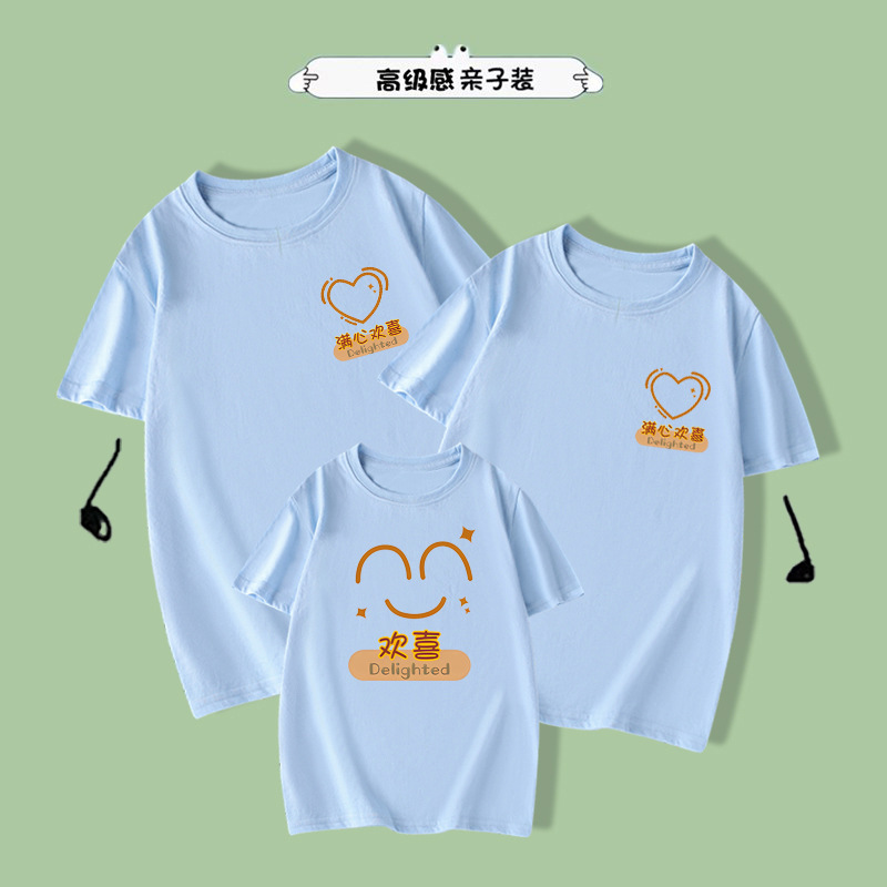 满心欢喜夏季新款亲子装2024一家三口四口母女全家福短袖纯棉t恤