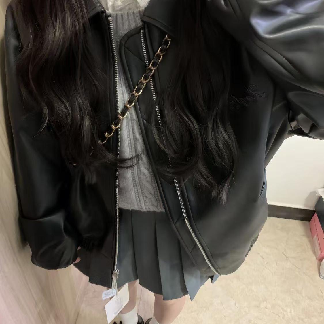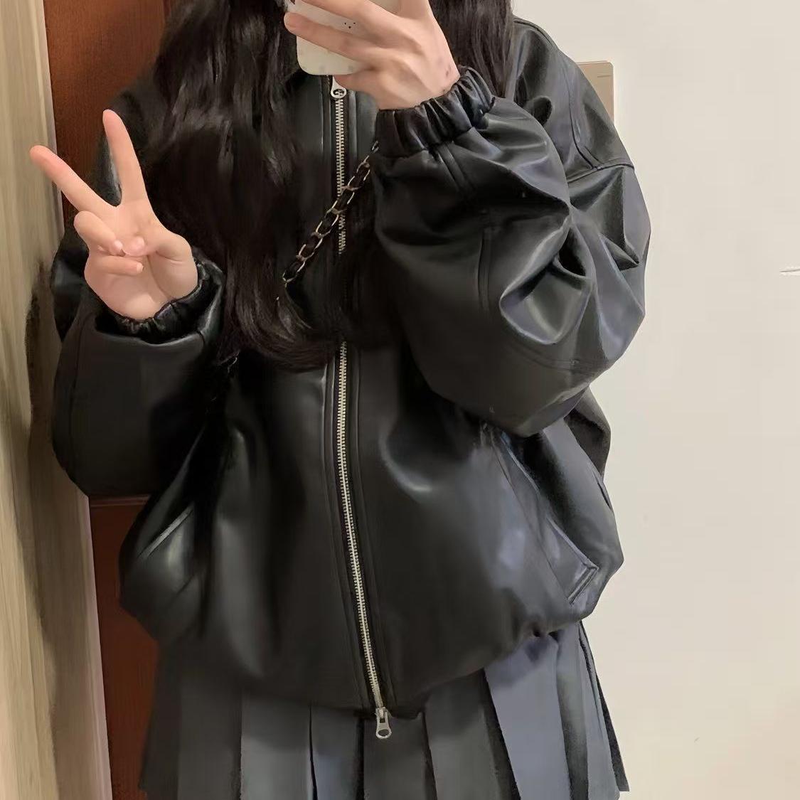 甜美ins复古机车风皮衣外套女秋季2025新款宽松休闲美式夹克上衣