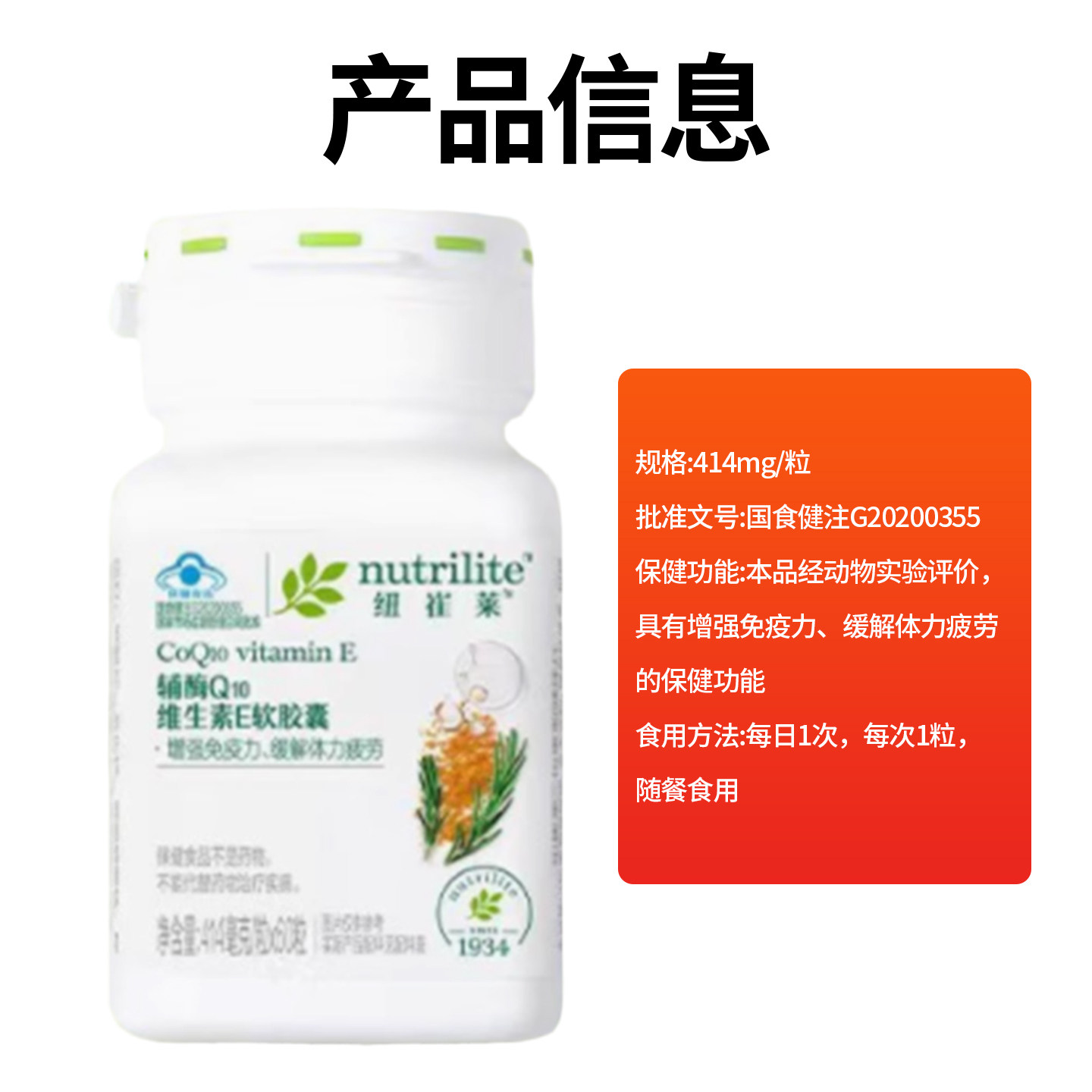 安利纽崔莱辅酶Q10维生素E软胶囊多效助力呵护心脑促代谢60片装
