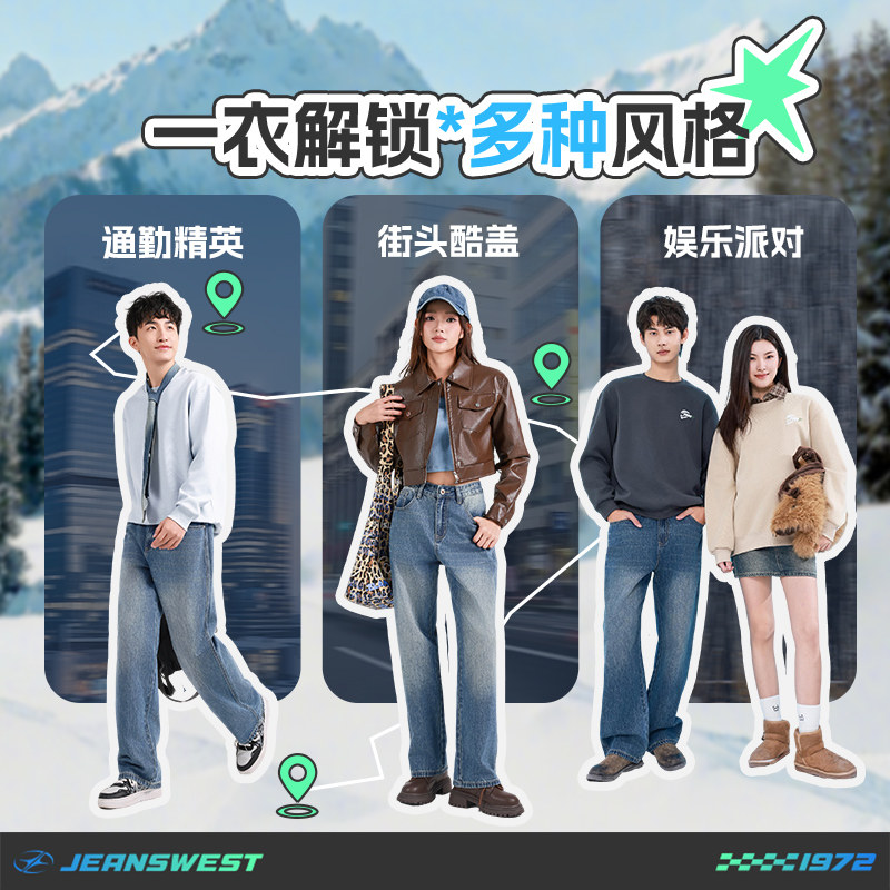 【王一博同款】真维斯水洗牛仔裤男女秋季美式潮牌宽松直筒裤KZ