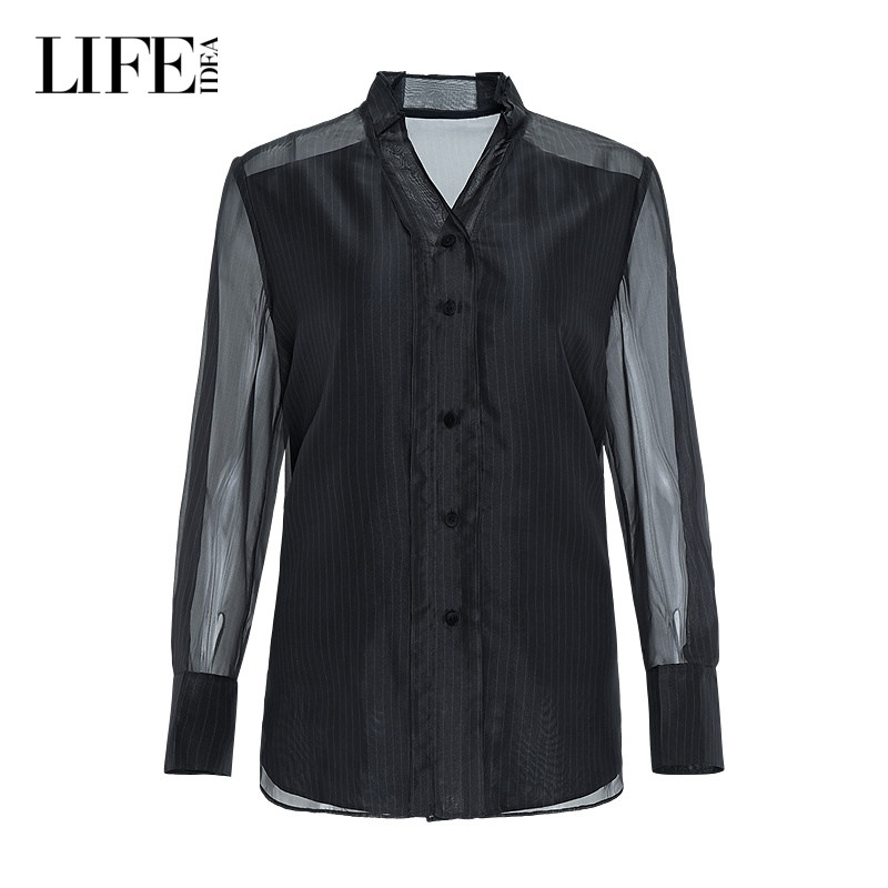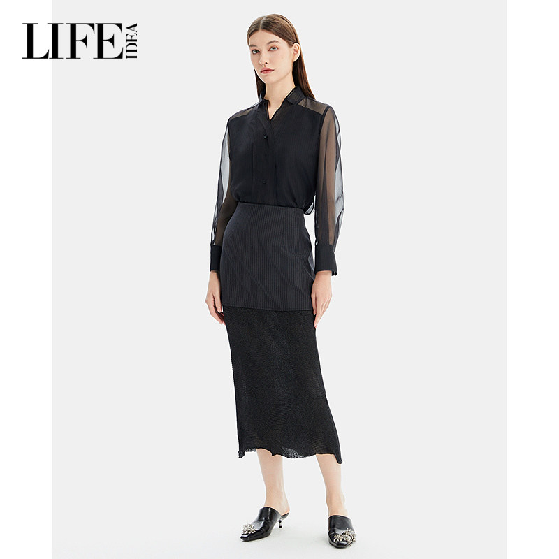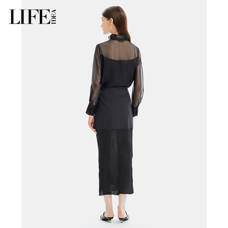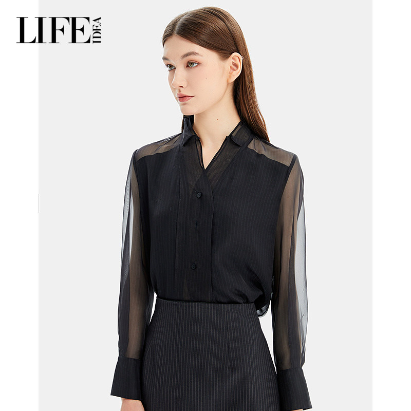 莱芙·艾迪儿商场同款春季新品镂空设计优雅性感长袖上衣女