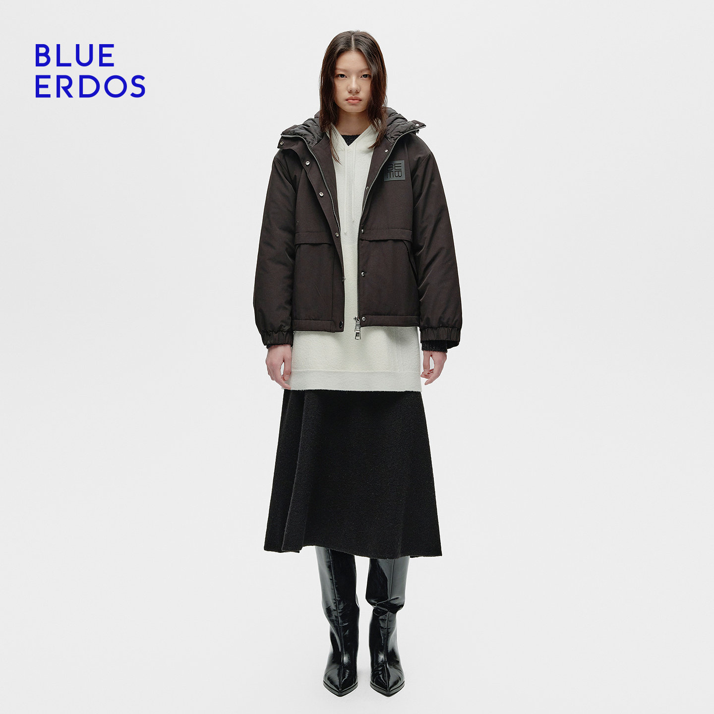 BLUE ERDOS冬季新品休闲百搭抽绳连帽羽绒服外套女B256JF019