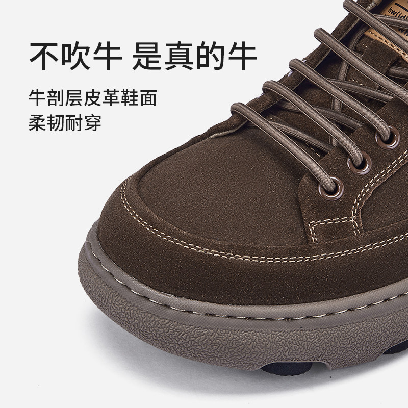 热风男鞋2026年春季新款男士复古厚底休闲皮鞋棕色通勤圆头鞋子