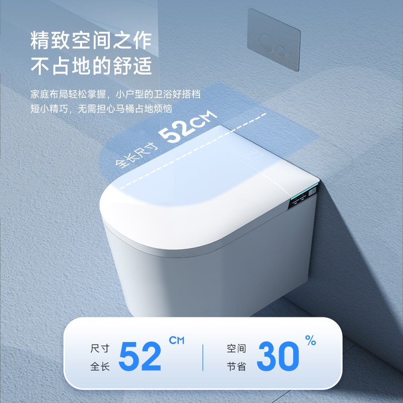 壁挂式智能坐便器52cm长度小户型壁挂马桶防溅水自动开盖脚感冲水