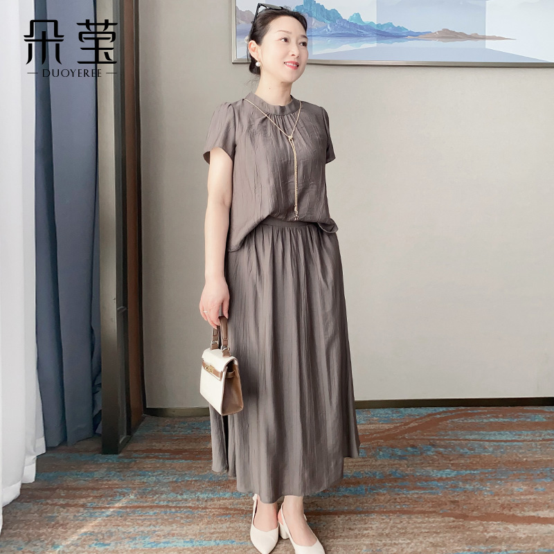 朵莹妈妈夏装套装裙子中年女洋气T恤中老年宽松小衫半身裙两件套