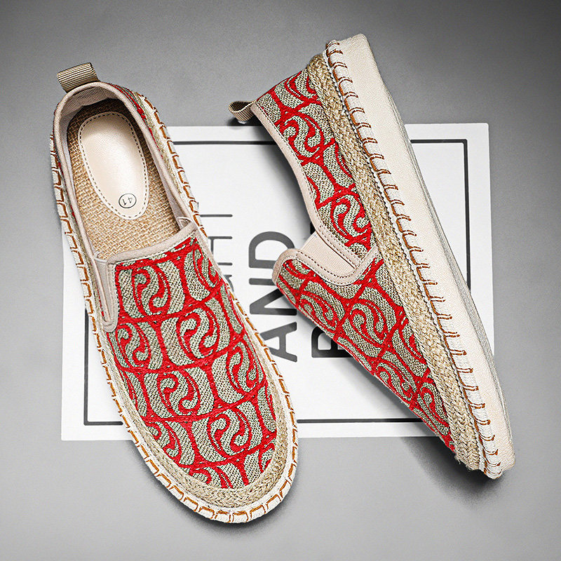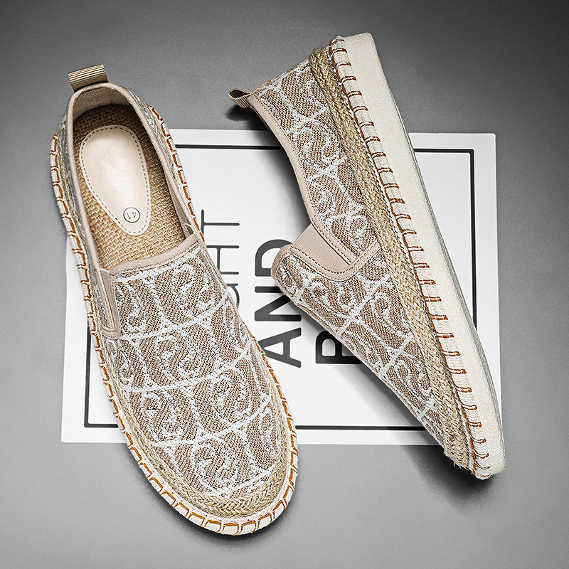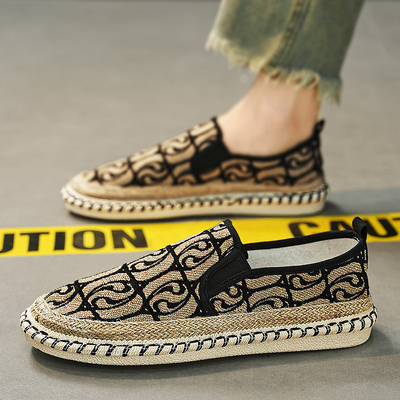 老北京布鞋男鞋春季休闲防滑运动开车专用一脚蹬大码亚麻渔夫板鞋