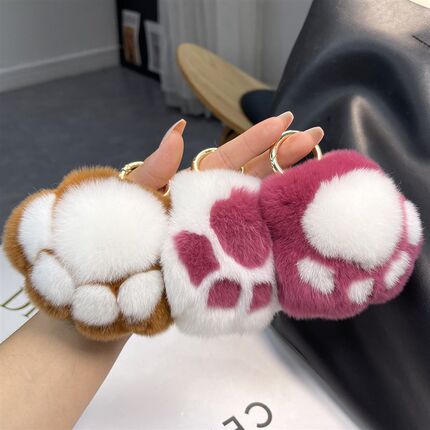原版真獭兔毛小猫爪汽车钥匙扣挂件可爱毛绒背包包挂饰生日礼物女