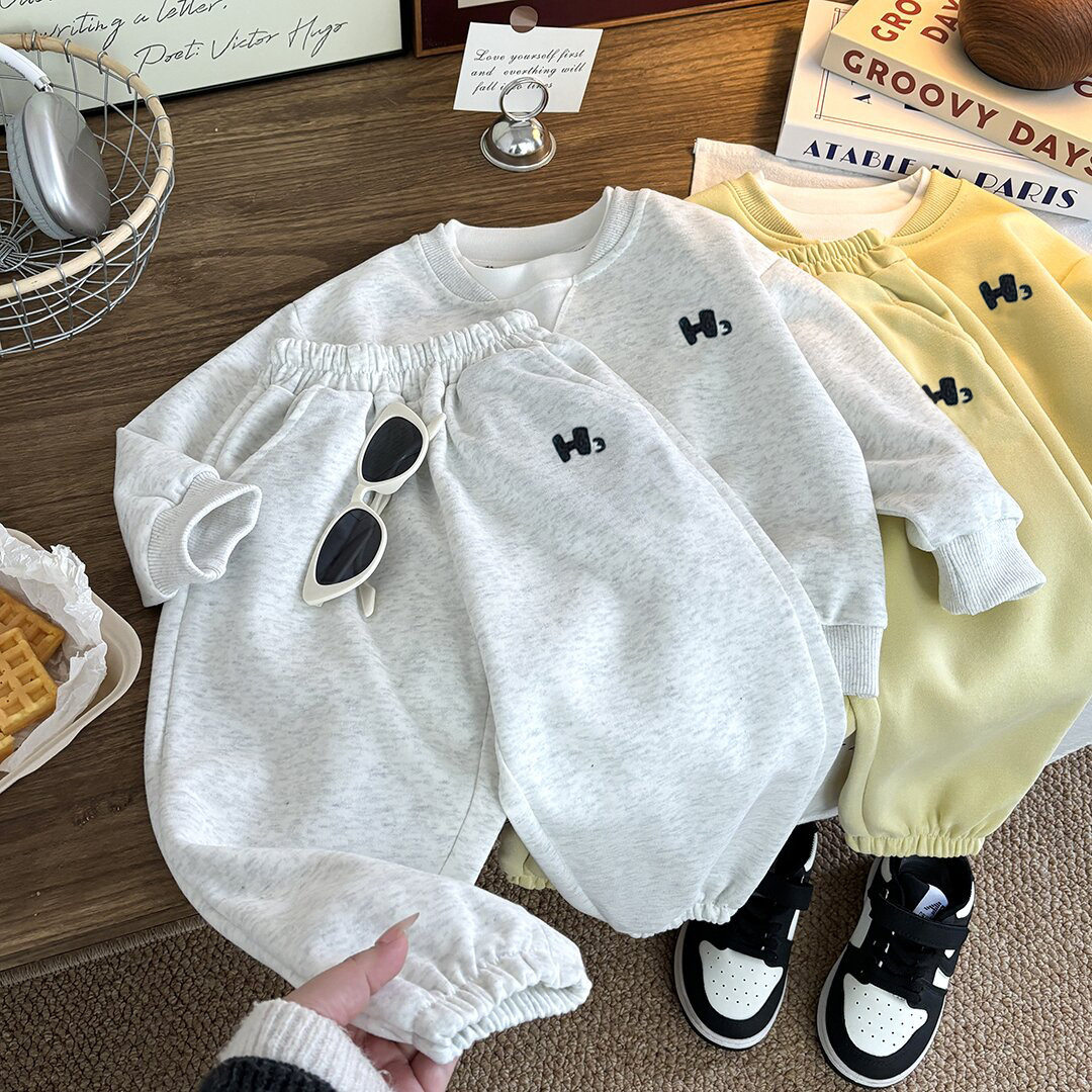 儿童加绒卫衣套装秋冬季长袖长裤男女童韩版中大童运动两件套童装