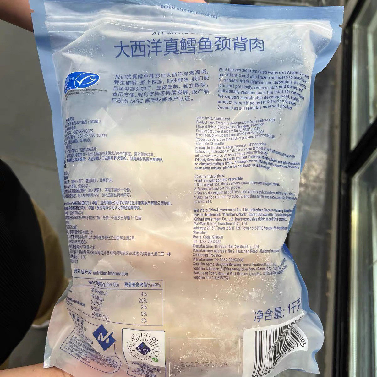 山姆MM大西洋真鳕鱼颈背肉1kg 深海捕捞肉质饱满紧实鳕鱼肉块