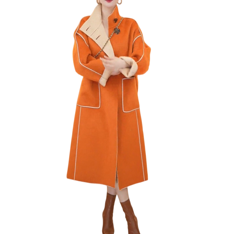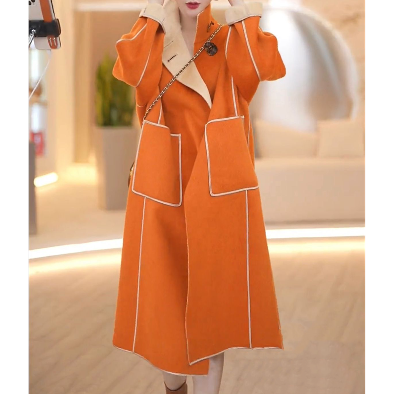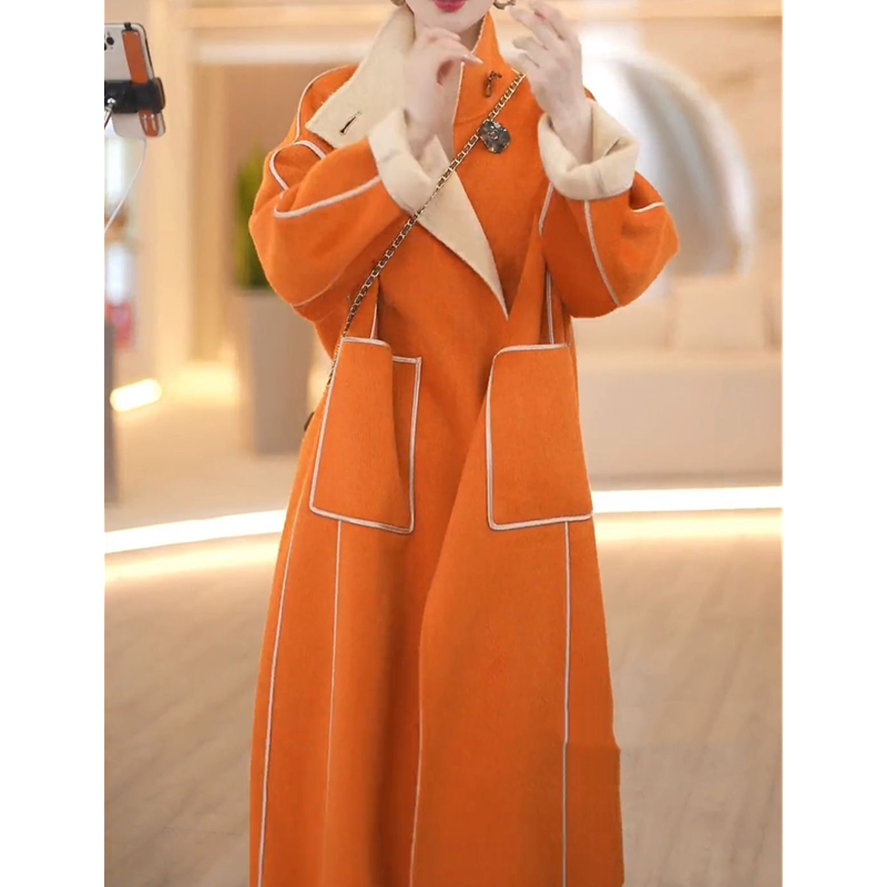 羊毛大衣女2025年冬季新款高端桔色中长款气质毛呢加厚呢子外套女
