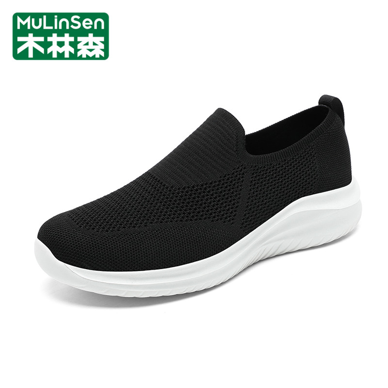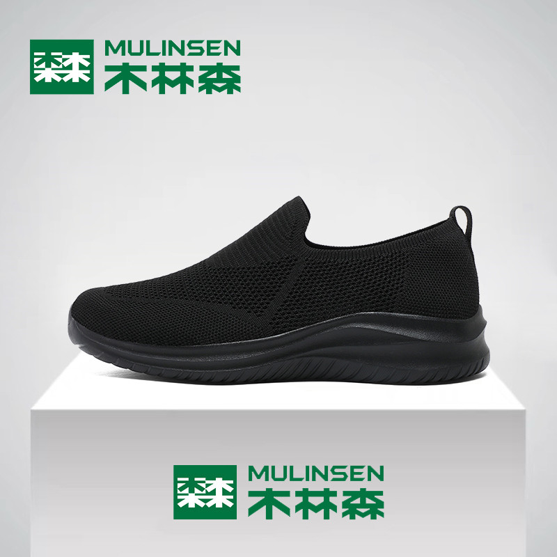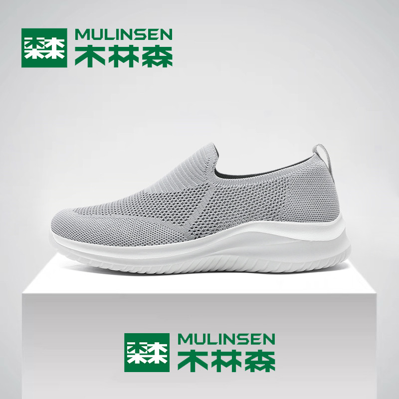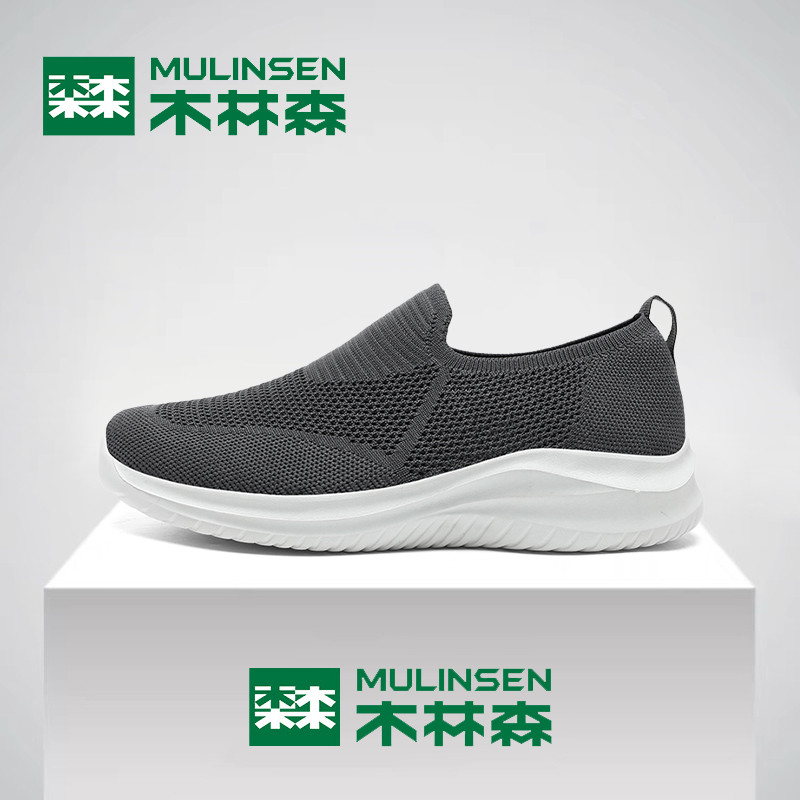 木林森网面鞋男冬季休闲运动飞织男士一脚蹬中老年爸爸大码健步鞋
