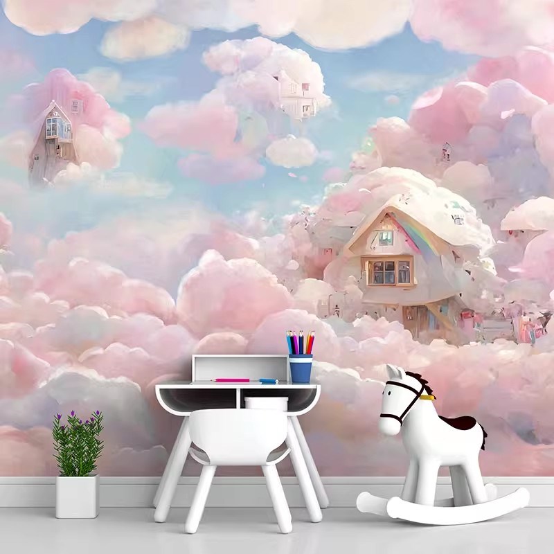 梦幻云朵墙布电视背景墙壁纸儿童房壁布客厅天空沙发卧室床头墙纸