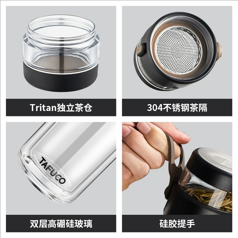 双层玻璃杯体配件高硼硅泰福高伯爵茶水分离杯T-6279通用耐热杯身
