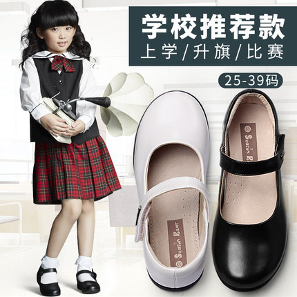 四季熊女童公主鞋2025春秋新款真皮哑光女孩软底校园演出黑色皮鞋