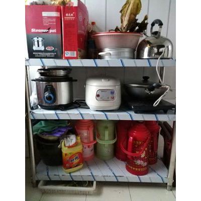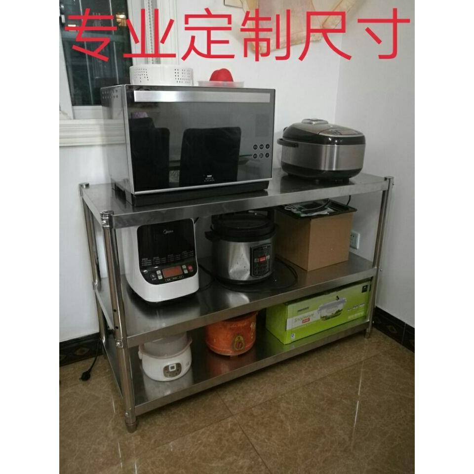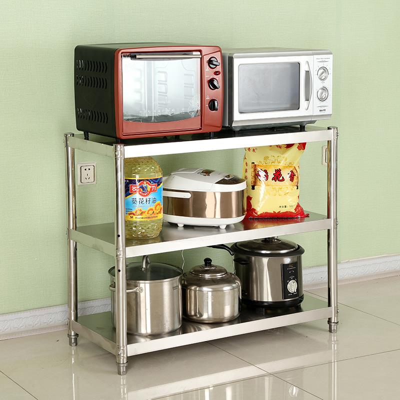 不锈钢厨房置物架3层微波炉架子多功能落地三层烤箱架收纳置物架