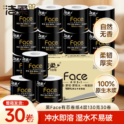 洁柔卷纸130克30卷卫生纸实惠装厕纸纸巾整箱批家用有芯卷筒纸GL