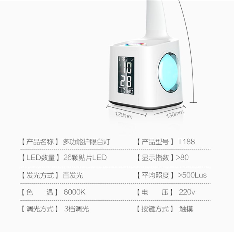 儿童护眼可调光带闹钟时间LED显示屏日历温度计学习护眼台灯
