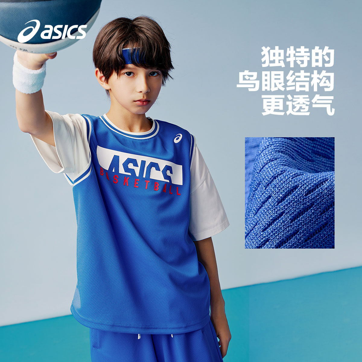 ASICS/亚瑟士童装舒适夏新款男女童吸湿速干短袖T恤短裤篮球套装