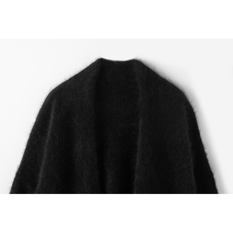 撩人心动!!百分百纯山羊绒拉绒工艺黑色中长款开衫外套