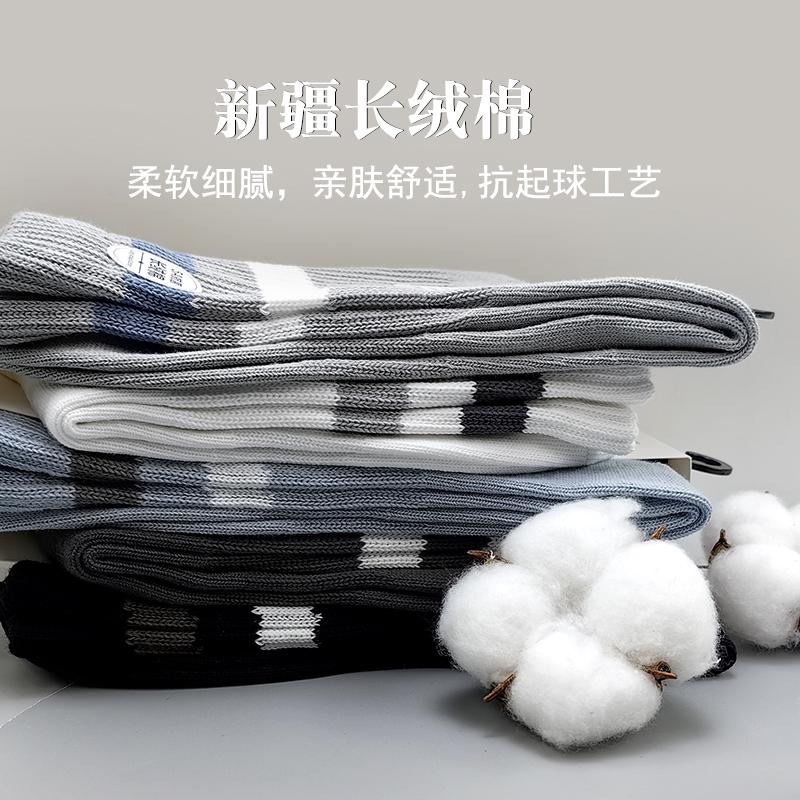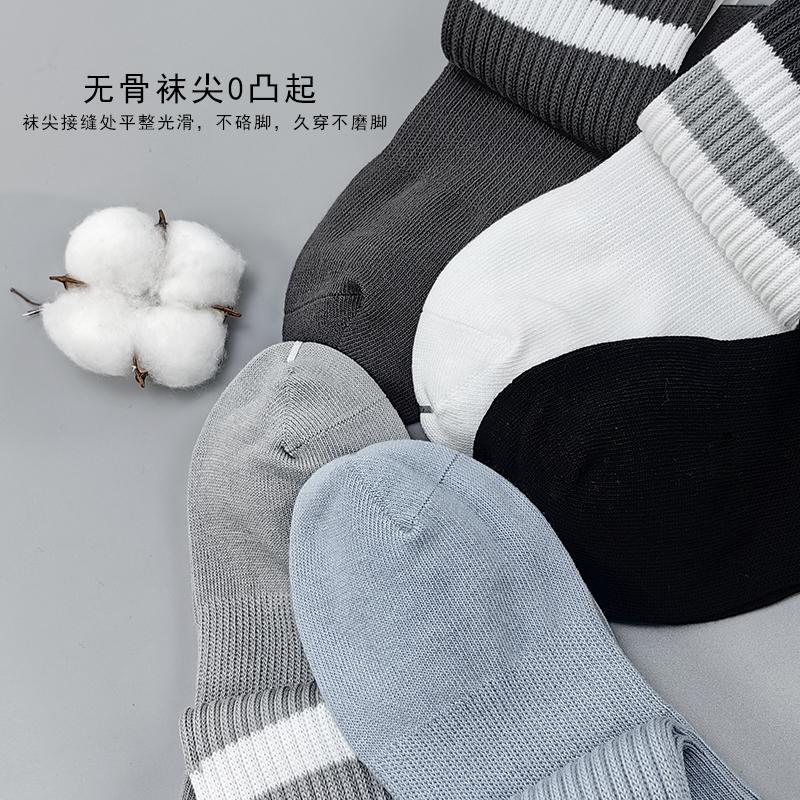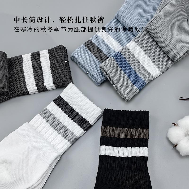 鹿人秋冬季男袜子纯棉加厚双杠运动袜无骨高筒长筒青少年学生短袜