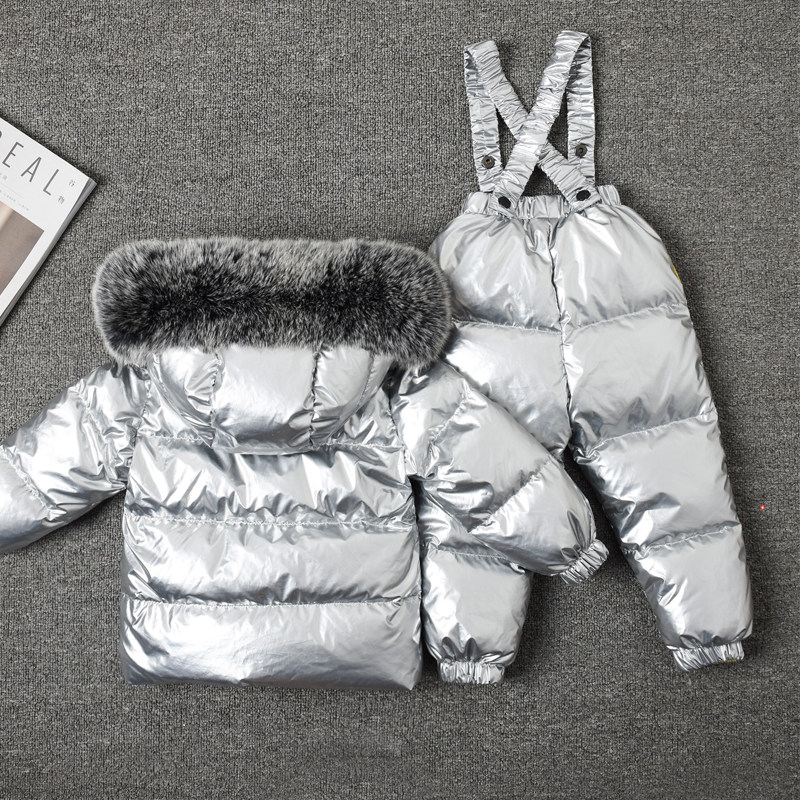 冬季新款儿童羽绒服套装宝宝婴儿背带裤套装男童女童貉子毛滑雪服