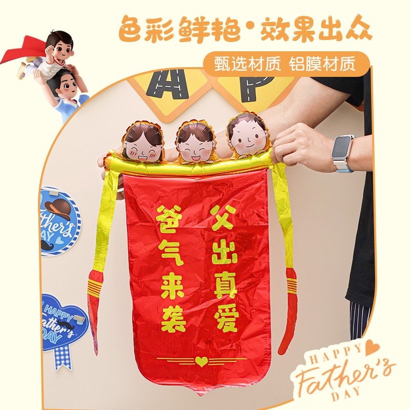 父亲节气球锦旗幼儿园儿童送爸爸的礼物教室装饰场景布.置铝膜手