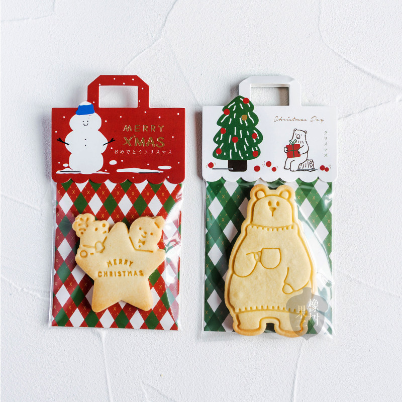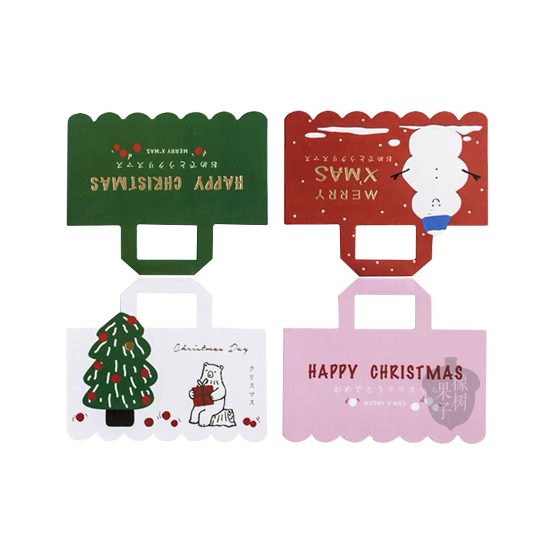 圣诞节创意手提页眉烫金拼色卡头雪人圣诞树卡通彩色饼干装饰垫卡