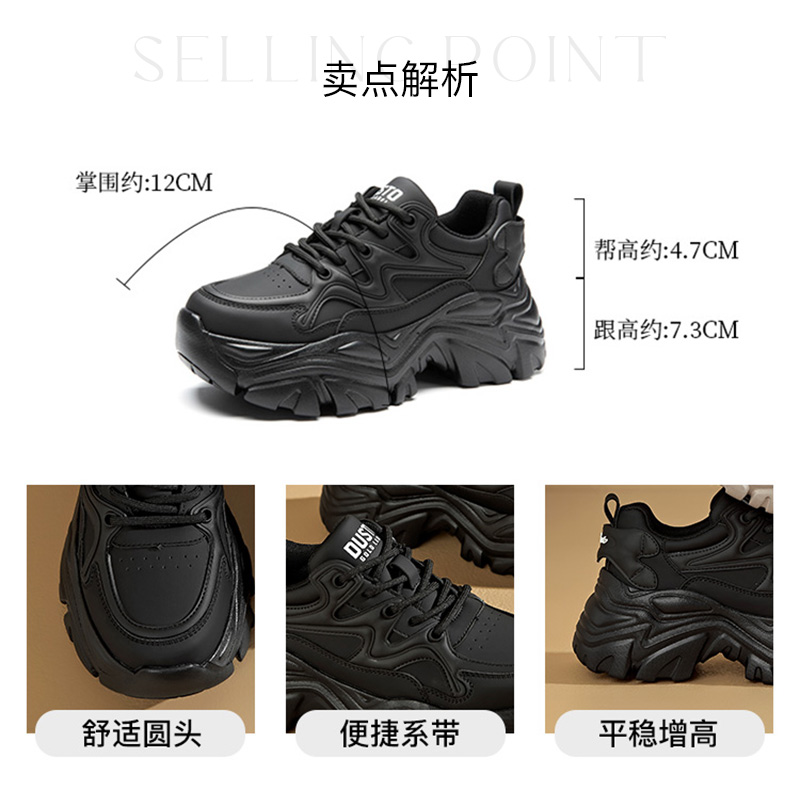 大东老爹鞋女鞋2025秋季新款时尚休闲简约粗跟系带高跟圆头Q0361