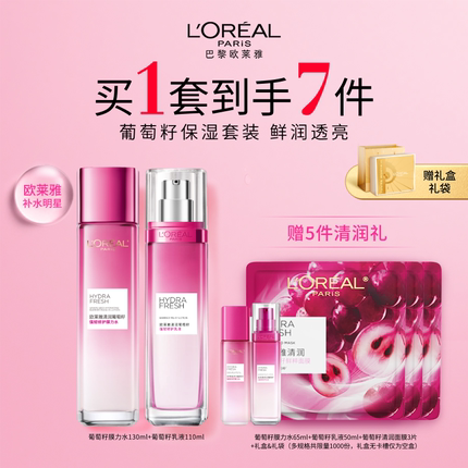 欧莱雅葡萄籽水乳套装爽肤水乳液提亮肌肤修护滋润保湿补水护肤品