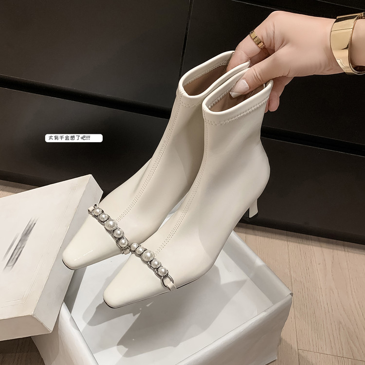 尖头粗高跟短靴2025冬季新款弹力靴袜靴法式小香风短筒大码女靴子
