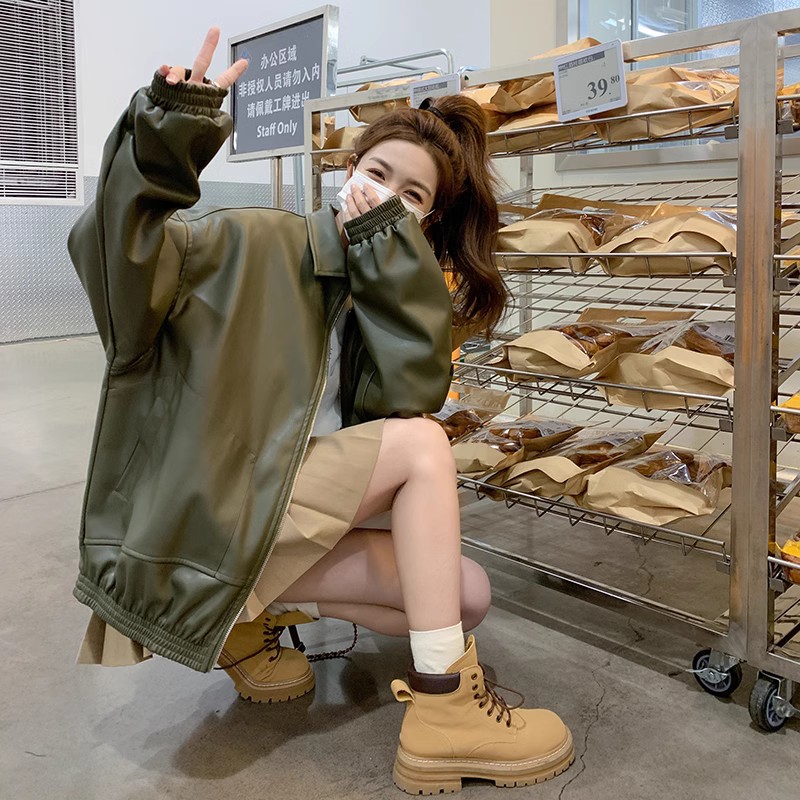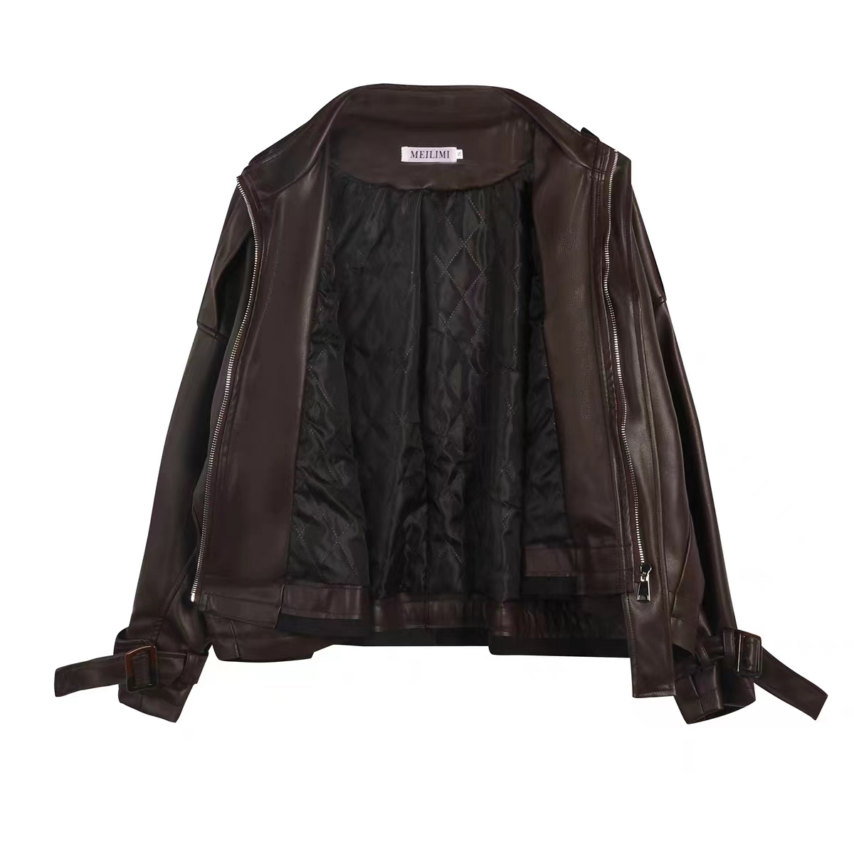 黑色oversize皮衣外套女2025年春秋季新款爆款宽松机车棕色皮夹克