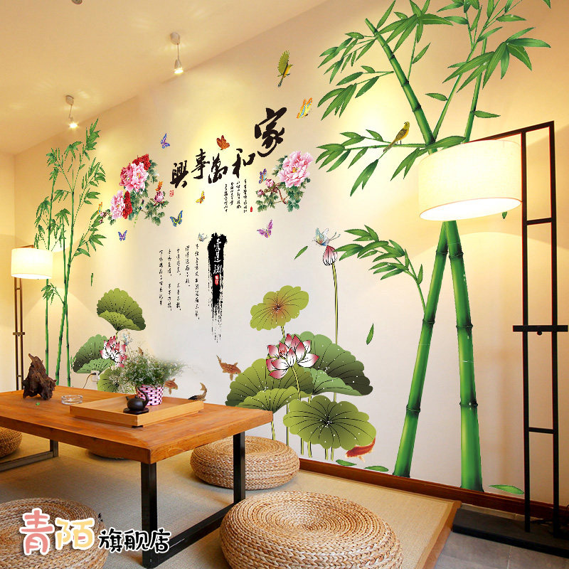 竹子贴画墙纸自粘中国风3D立体