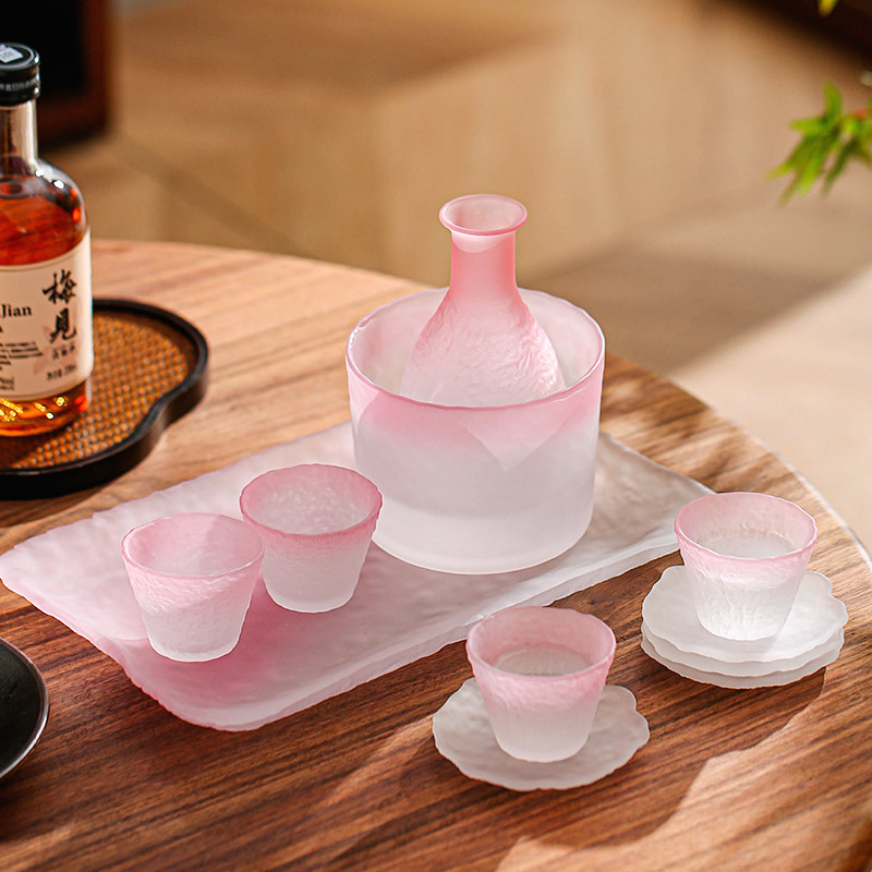 妃粉日式清酒酒具烫酒壶温酒器套装家用高端玻璃小酒杯小酒壶酒盅